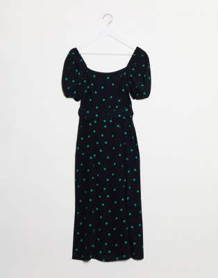 - New look square neck belted midi dress in polka dot clearance