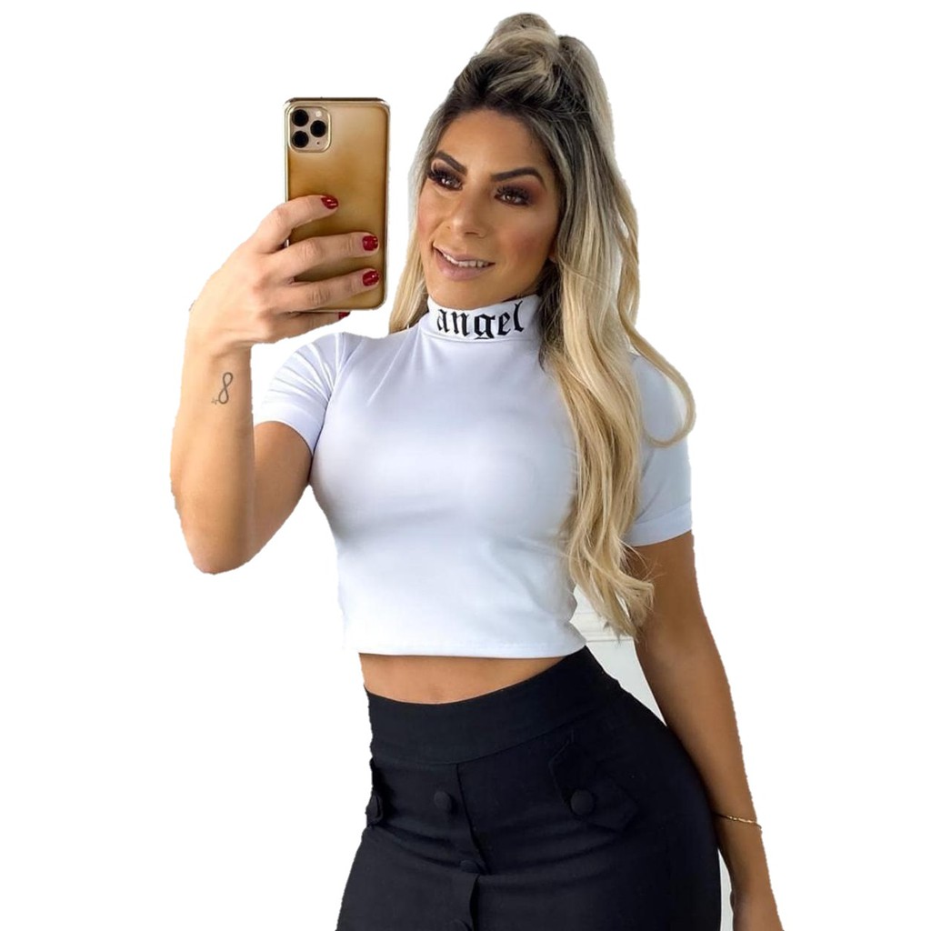 Blusa gola angel Clearance, Kit 3 Cropped Blusa Angel Viscolycra Gola Alta Feminino Estilosa Moda Verão | Shopee Brasil Clearance