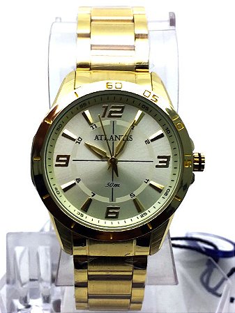 Atlantis relógio atacado Clearance, RELOGIO ATLANTIS FEMININO G3337 FUNDO DOURADO - Atacado Atlantis Relogios Clearance