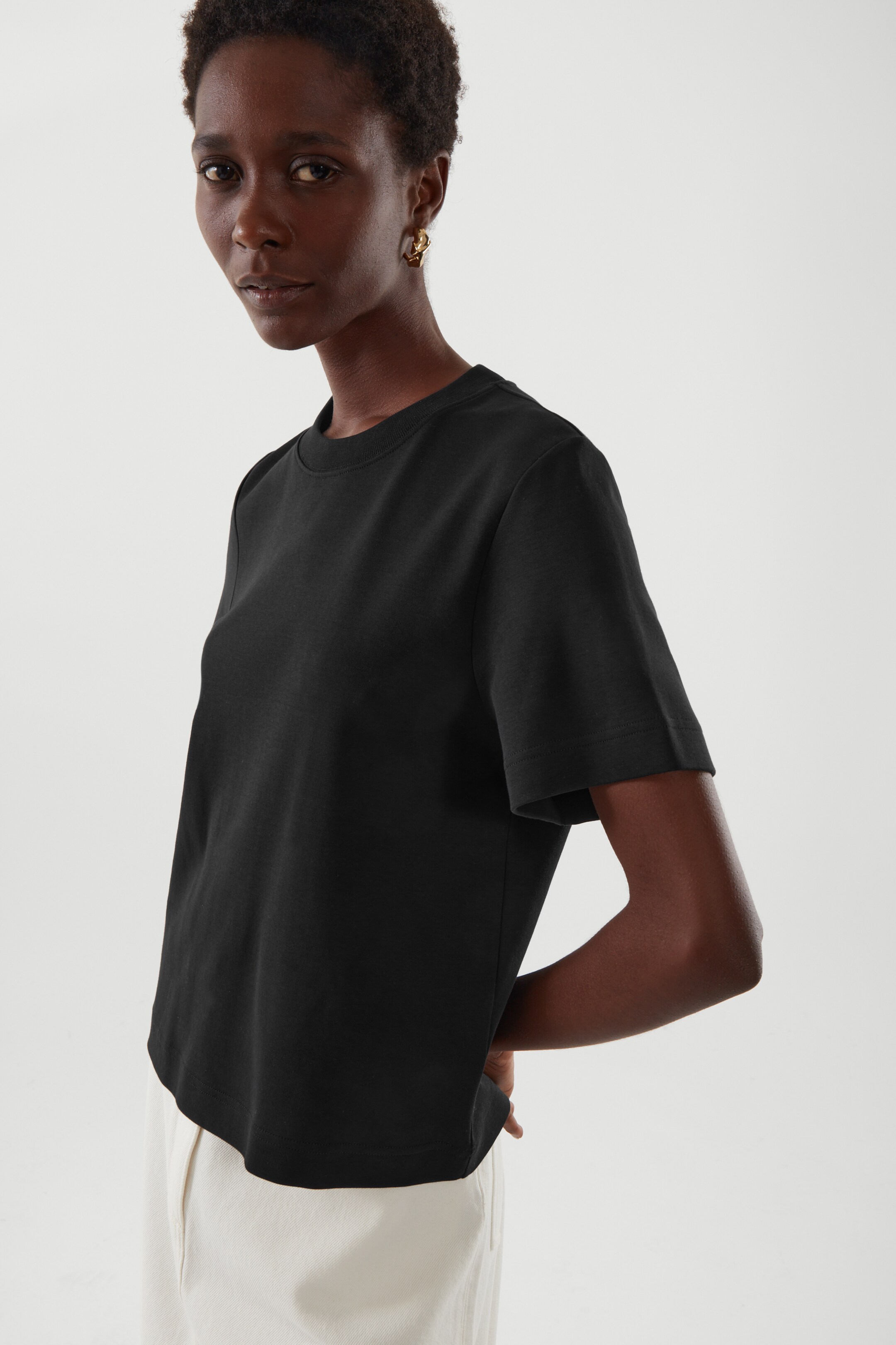 Cos black t shirt Clearance, COS Cotton T-shirt With Raised Neck in Clearance