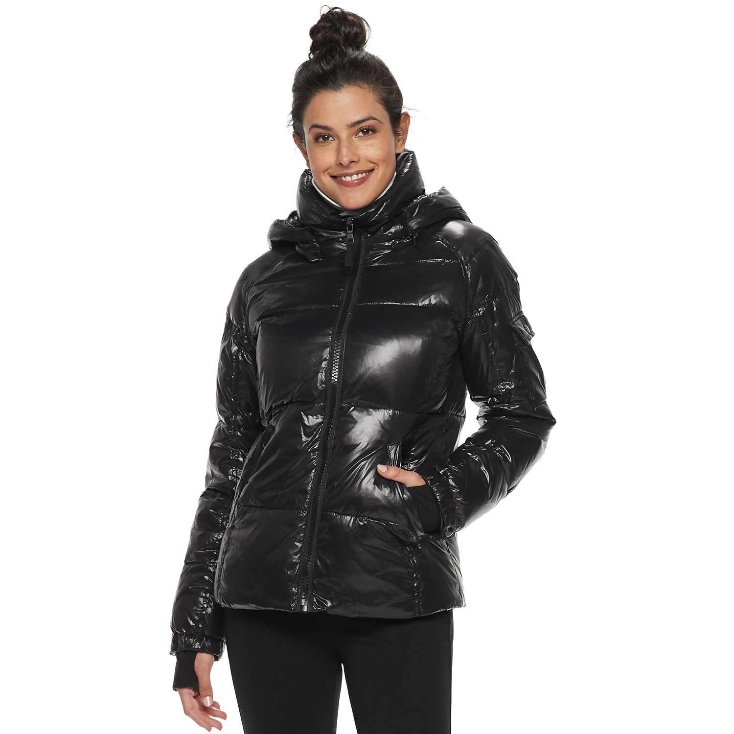 S13 women's down coat Clearance, Women's S13 Hooded Glossy Down Puffer Coat Clearance