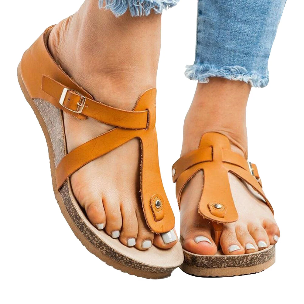 T strap footbed sandals Clearance, T-Strap Thong Sandals Buckle Slip On Clearance